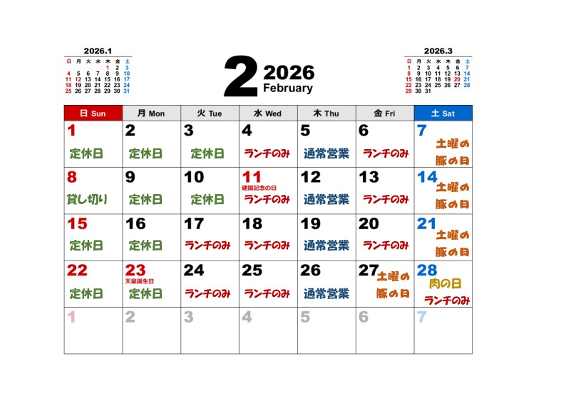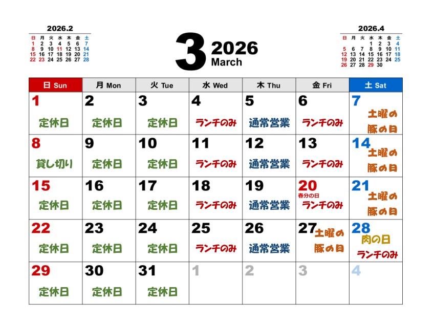 豚丼普通盛り・カレー丼・生姜焼き・ホークソテー普通盛り